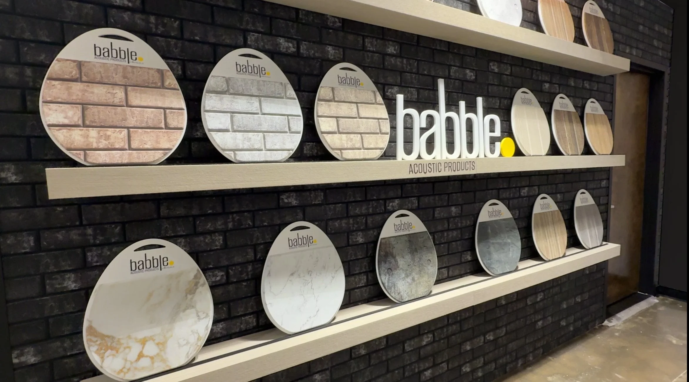 babble products significantly improve sound absorption and echo reduction. While results vary by space and application, adding texture and soft surfaces to walls and ceilings can make a dramatic difference. All babble panels are made from 9.5mm PET acoustic material designed to absorb mid- and high-frequency noise. For best results, address as many hard surfaces in the space as possible.